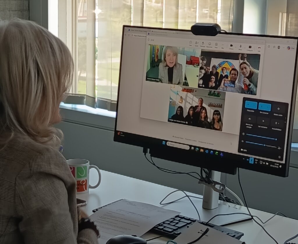 La consejera Victoria Bazaga ha comunicado por videollamada la noticia a los estudiantes ganadores del concurso